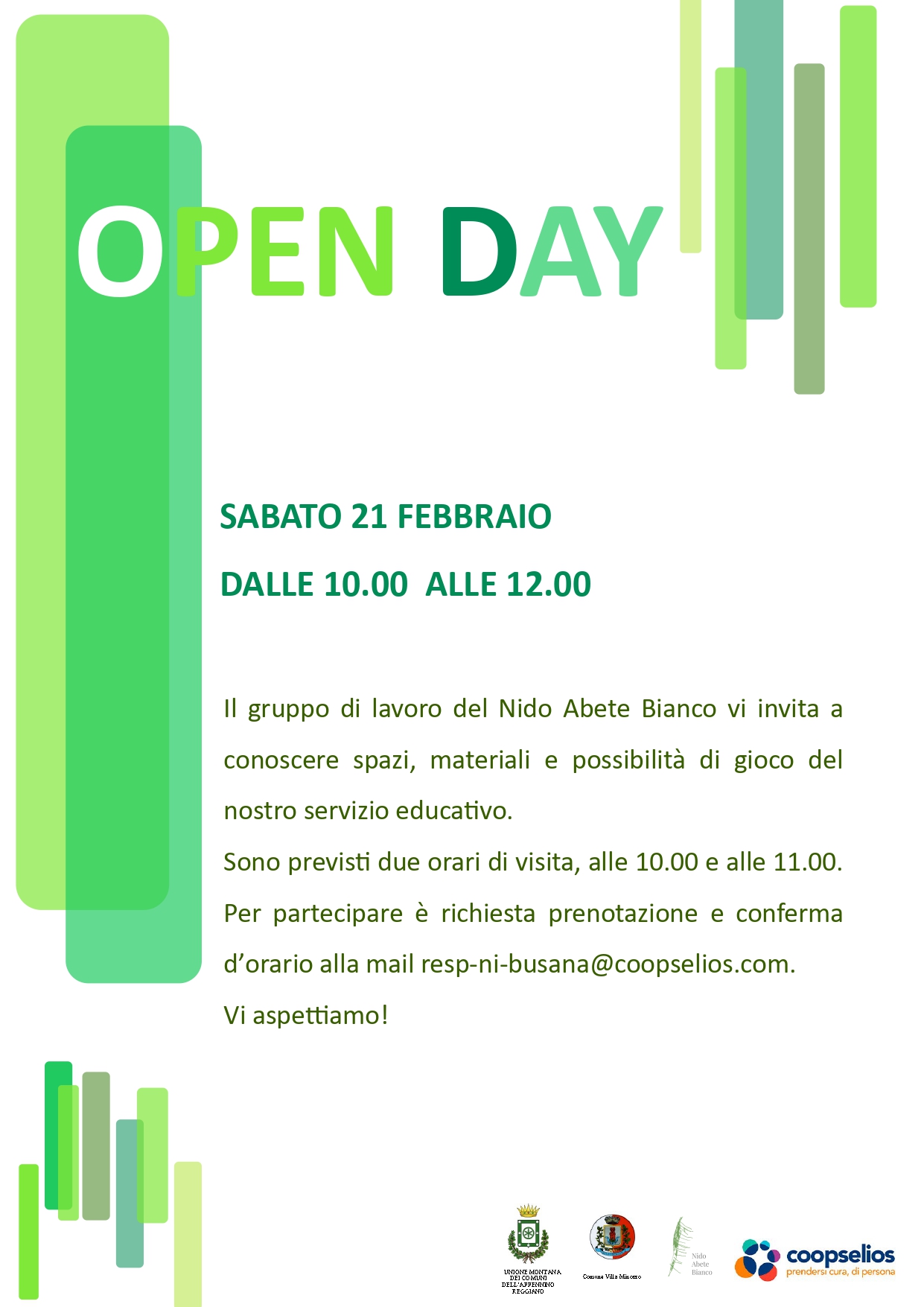 OPEN DAY NIDO D’INFANZIA “ABETE BIANCO” DI VILLA MINOZZO SABATO 21 FEBBRAIO DALLE ORE 10:00 ALLE ORE 12:00